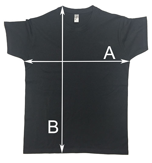 2. Mide ahora la altura de la camiseta desde el cuello hasta abajo (Medida B en el dibujo).